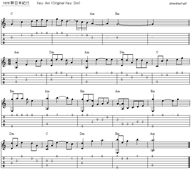 NHK「新日本紀行」のテーマ ソロギタータブ譜 : ギター弾き語りタブ譜など